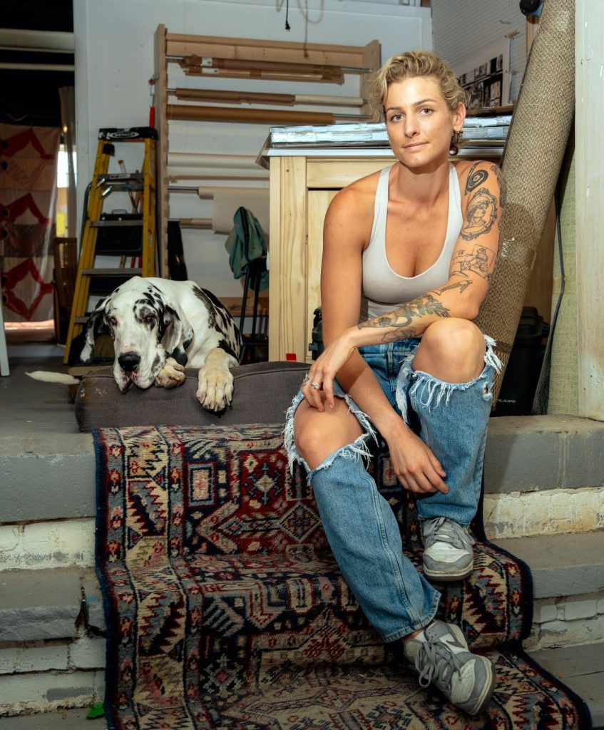 Brooke Stewart is a Boston-based interdisciplinary artist whose work explores the intersection of art and sport. Her research is rooted in large-scale printmaking, painting, and mixed-media installation. Stewart earned her MFA from the School of the Museum of Fine Arts at Tufts University (2018) and her BA from the College of William and Mary (2016). A lifelong athlete, she treats courts, basketball, tennis, and other playing surfaces as sacred, earth-like fields of memory, movement, and cultural identity. Her practice investigates how public space, repetition, ritual, and physicality shape narratives of belonging.