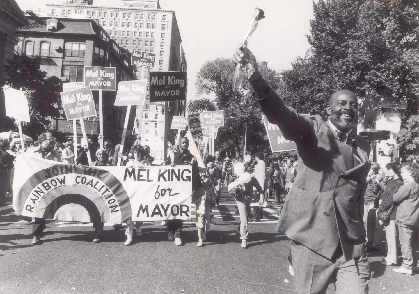 Mel King during election campaign in 1983 | Image via the Boston Globe (Joe Dennehy/Globe Staff)