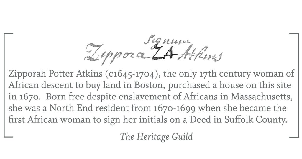 Visitors are encouraged to explore the memorial to Zipporah Potter Atkins on The Greenway in the North End, which includes her signature and serves as a lasting acknowledgment of her life and enduring connection to this place.