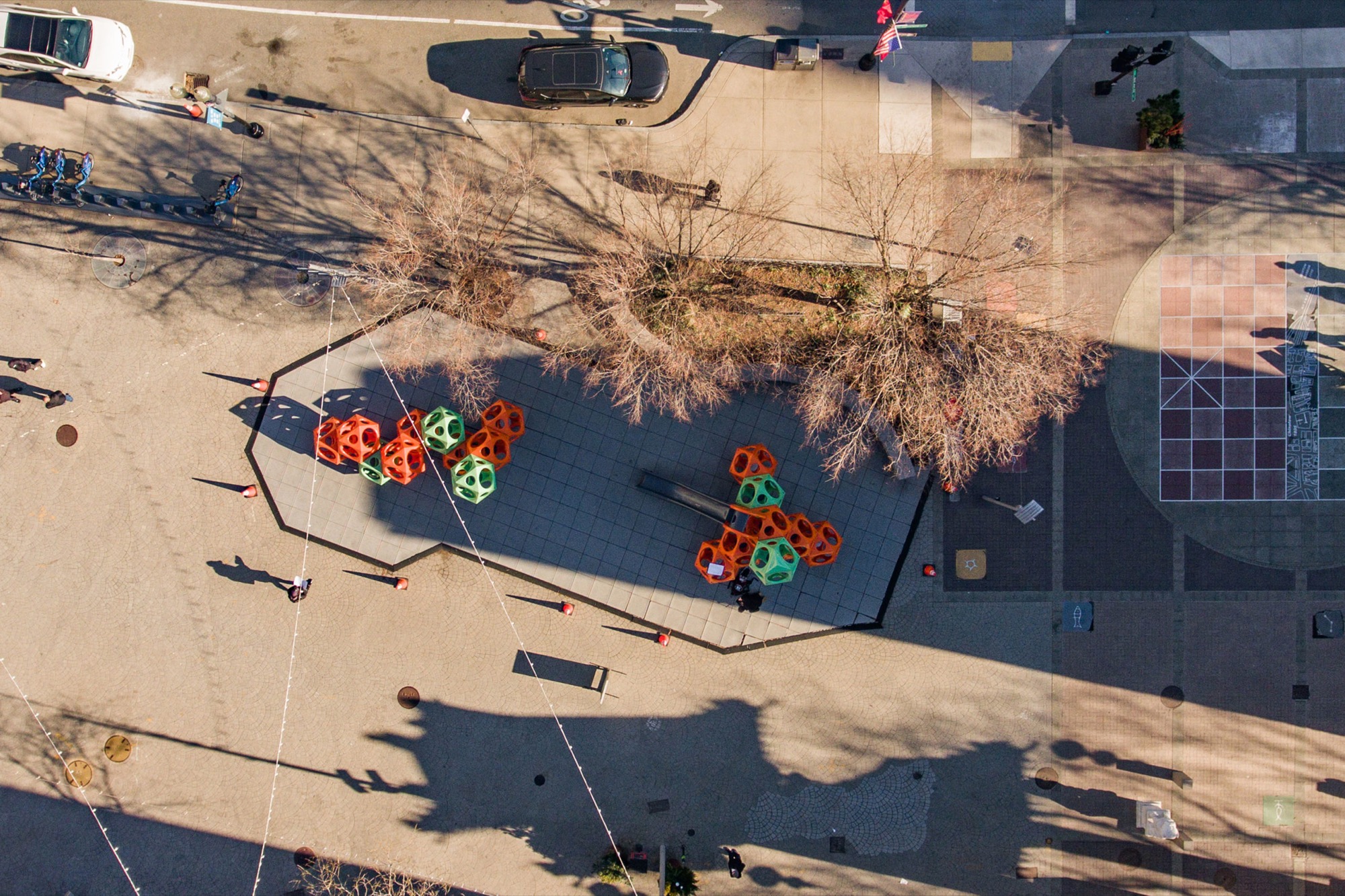 In May 2021, the Conservancy removed 5-year old safety tiles from underneath the Greenway PlayCubes in Auntie Kay & Uncle Frank Chin Park on The Greenway. A new, colorful, continuous surface was poured in their place and the park was reopened to the public. This new surface creates a safer play area while adding a playful pop of color to the Chin Park plaza. Thank you to all of our partners and community members that made this possible and came out to watch this exciting upgrade. We invite families and children of all ages to enjoy our renovated PlayCubes, the only one of its kind on The Greenway.