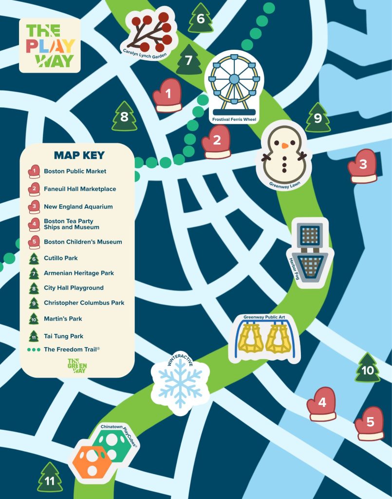 Stretching from the vibrant streets of Chinatown to the historic charm of the North and West End neighborhoods, The Greenway is more than just a park — it’s an ever-changing green space in the heart of Boston. And now, with The Playway, families can explore this urban oasis through a fresh lens of fun, creativity, and connection.