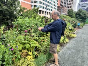 Meet John O. Harney, a dedicated Phenology volunteer of the Greenway Conservancy and avid writer! After more than 30 years as the Executive Editor of The New England Journal of Higher Education, John put down his pen and looked forward to a retirement of watching over the plants on the Rose Kennedy Greenway. He decided to join our Phenology Volunteer Program in 2023, and has been an integral asset to the team since. Along with his time tracking bloom cycles of plants in the Dewey Square area of the park, John teaches English at the Immigrant Learning Center in Malden, MA.