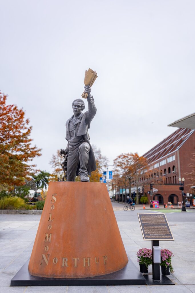 Hope Out of Darkness was created by Wesley Wofford, FNSS, of North Carolina and commissioned by the Solomon Northup Committee for Commemorative Works. Presented in partnership with the North American Indian Center of Boston (NAICOB) and the Greenway Conservancy, the exhibition brings this monumental bronze work to Boston’s waterfront, inviting residents and visitors to reflect on history, resilience, and the enduring pursuit of justice.